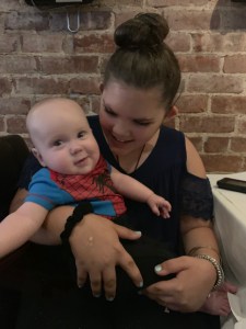 On our way to NYC, I contacted my cousin Betsy, who lives there and she graciously offered to go to the restaurant we were having dinner at so we could meet our newest cousin, six month old Lincoln. Maria was absolutely thrilled, as she has been asking steadily for months…six months…to see him. They arrived at the restaurant and Maria was all smiles! She loves babies and she loves her family and this little guy was both. The evening would have been complete enough for her right then and there, but there was more to come.