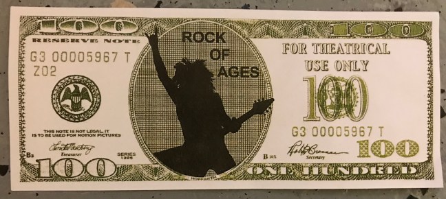 After dinner, we rushed to get to the theater on time- and just made it, thanks to Betsy and Jon. That’s where the next surprise was unveiled- we are going to see Rock Of Ages! The play that is comprised of 80’s hair metal music and memories. Once again, her face was erupting with happiness. We walked to our seats, right at the edge of the stage. Any closer and we’d have to be on the cast payroll! The show was great- the band was awesome and Maria was singing along to several of the songs. At the end of the first act, she turned to me with a huge grin on her face and said, “Daddy, she smiled at me!” She, being one of the cast members who was onstage directly in front of us for most of the show. I was worried that Maria was going to lose interest as the show went on, but with the attention from one of the actresses, she was instantly reengaged. She watched, clapped and sang through the rest of the show right up to the end. After a standing ovation of applause, the cast returned for a curtain call. The young lady, who I now know is Zoe Birkett, was directly in front of us again. With a big smile, she bowed and looked down to see my daughter’s big brown eyes fixated on her. She then gave Maria a little wave. This simple gesture nearly brought me to tears, as I watched the smile on my daughter’s face grow even larger than before. Then, as if Zoe knew Maria was someone special, she knelt down on the stage, while the rest of the cast was basking in the adulation and she extended her hand to my little girl and gave her a high five. For a moment, it was as if there was no one else in the theater. Then, as she turned to walk into the wings, she reached down and grabbed a prop hundred dollar bill from the play and handed it to Maria. At this point, my allergies must have been kicking in, as I had to wipe my eyes, watching my little girl smiling a smile so big that I thought she was going to burst.